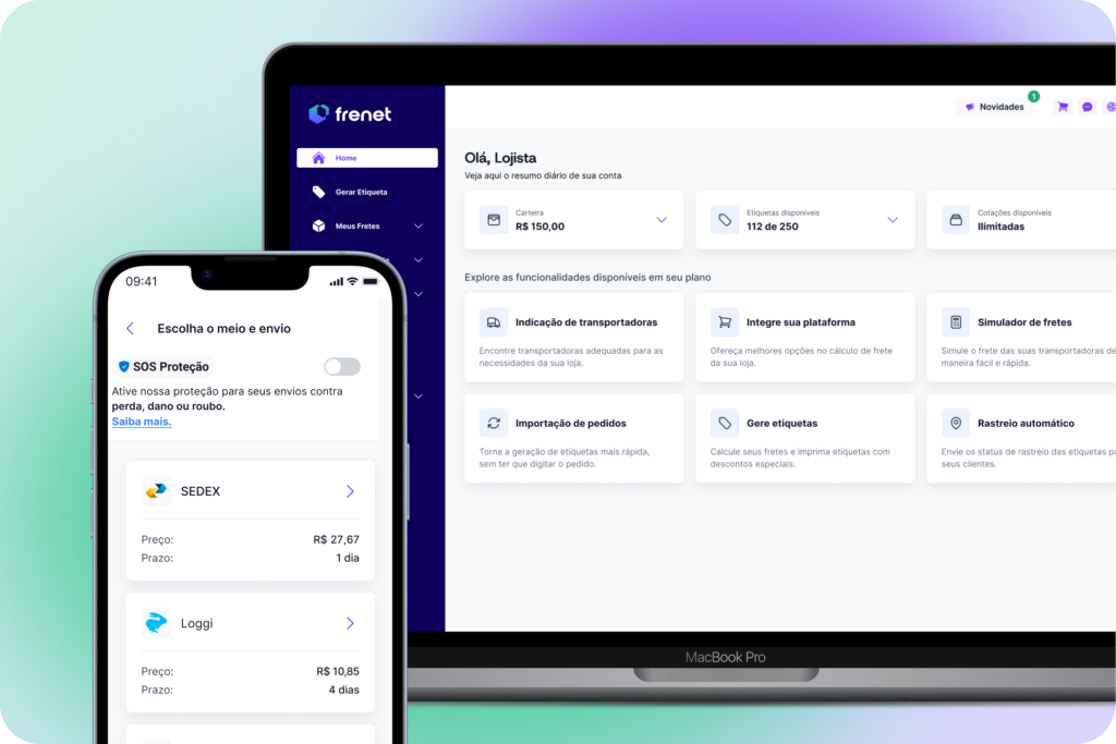 A Frenet é uma plataforma de gestão e automação de fretes que conecta o seu negócio a múltiplas transportadoras em um único ambiente.
